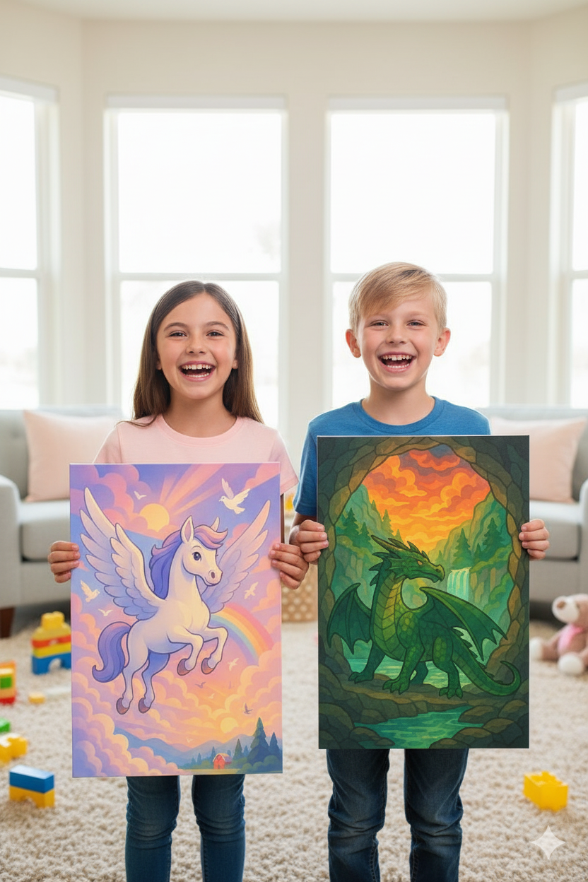 Every finished painting boosts confidence and pride, while the calming process sparks imagination, relaxation, and joy. A fun, healthy alternative to screens — with themes kids truly love.